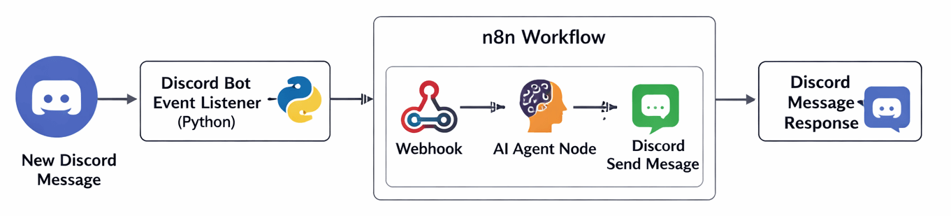 - Discord Bot Event Listener (Python) - captures messages and sends them to the n8n webhook